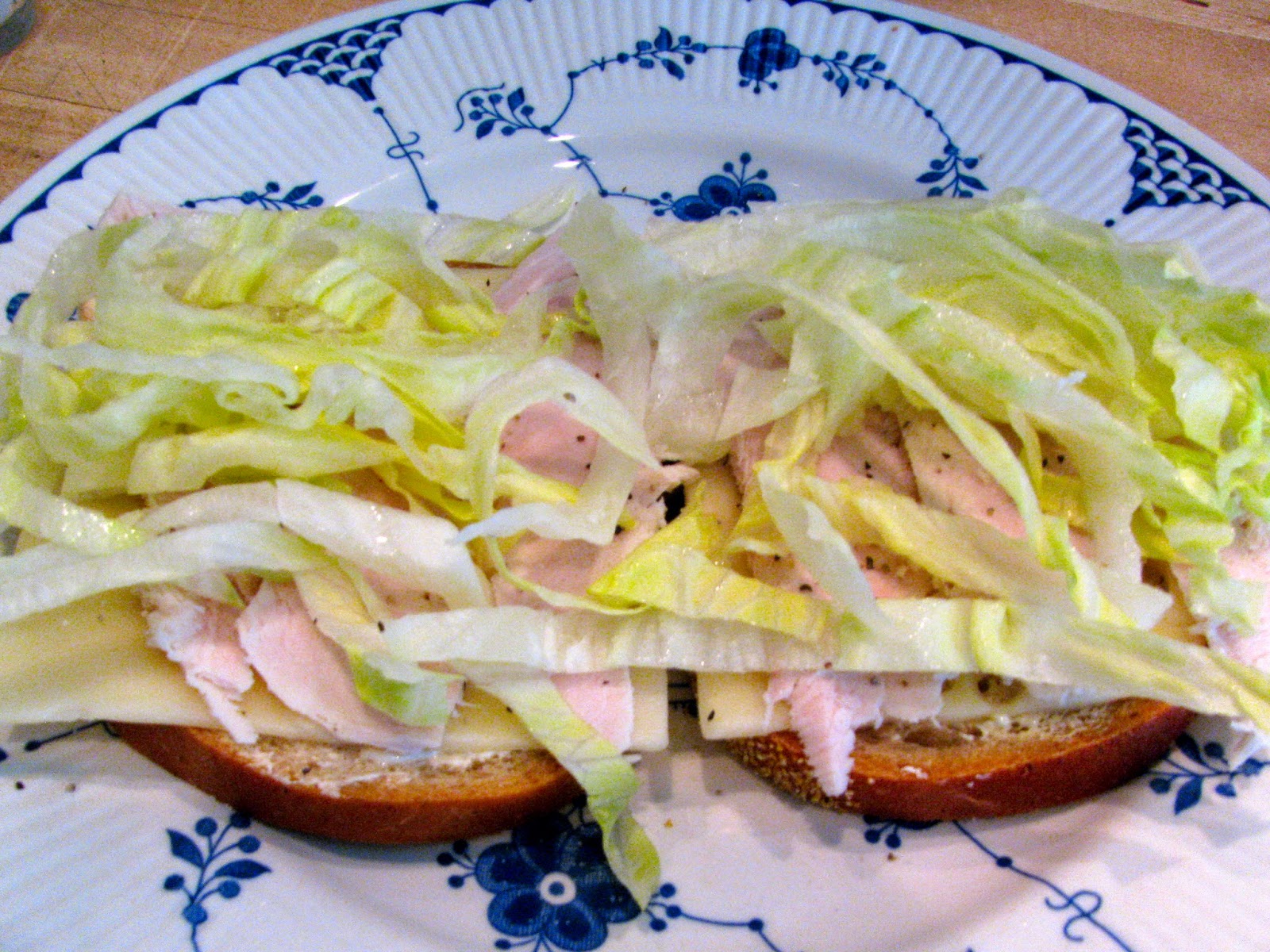 3. Next add 1 or 2 thin slices of turkey to cover.